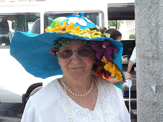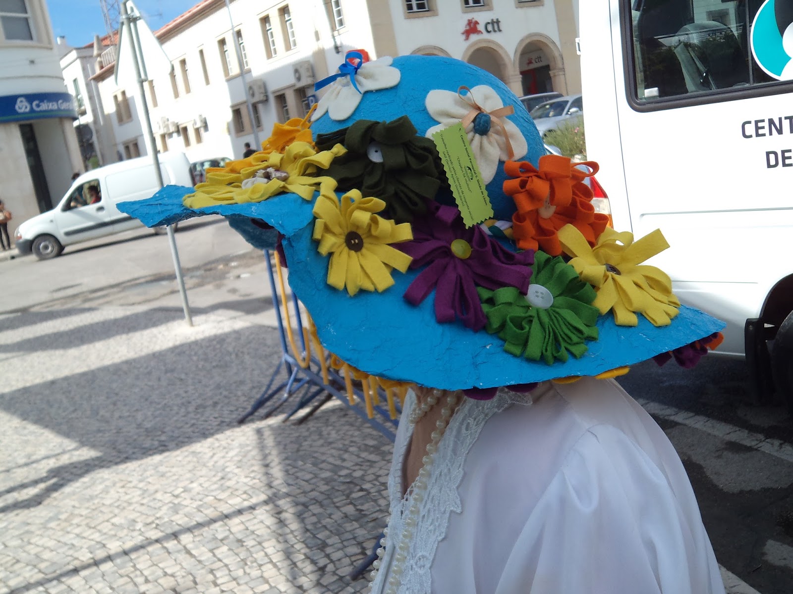 Os velhotes com fato domingueiro vieram em carrinhas dos Lares -, cruzei-me com eles em debanda para o lanche...adorei este chapéu em felpo muito criativo e decorativo usado por uma bela senhora com pérolas ao pescoço e blusa de rendas branca. Assim é que é, vaidosa sim senhor!