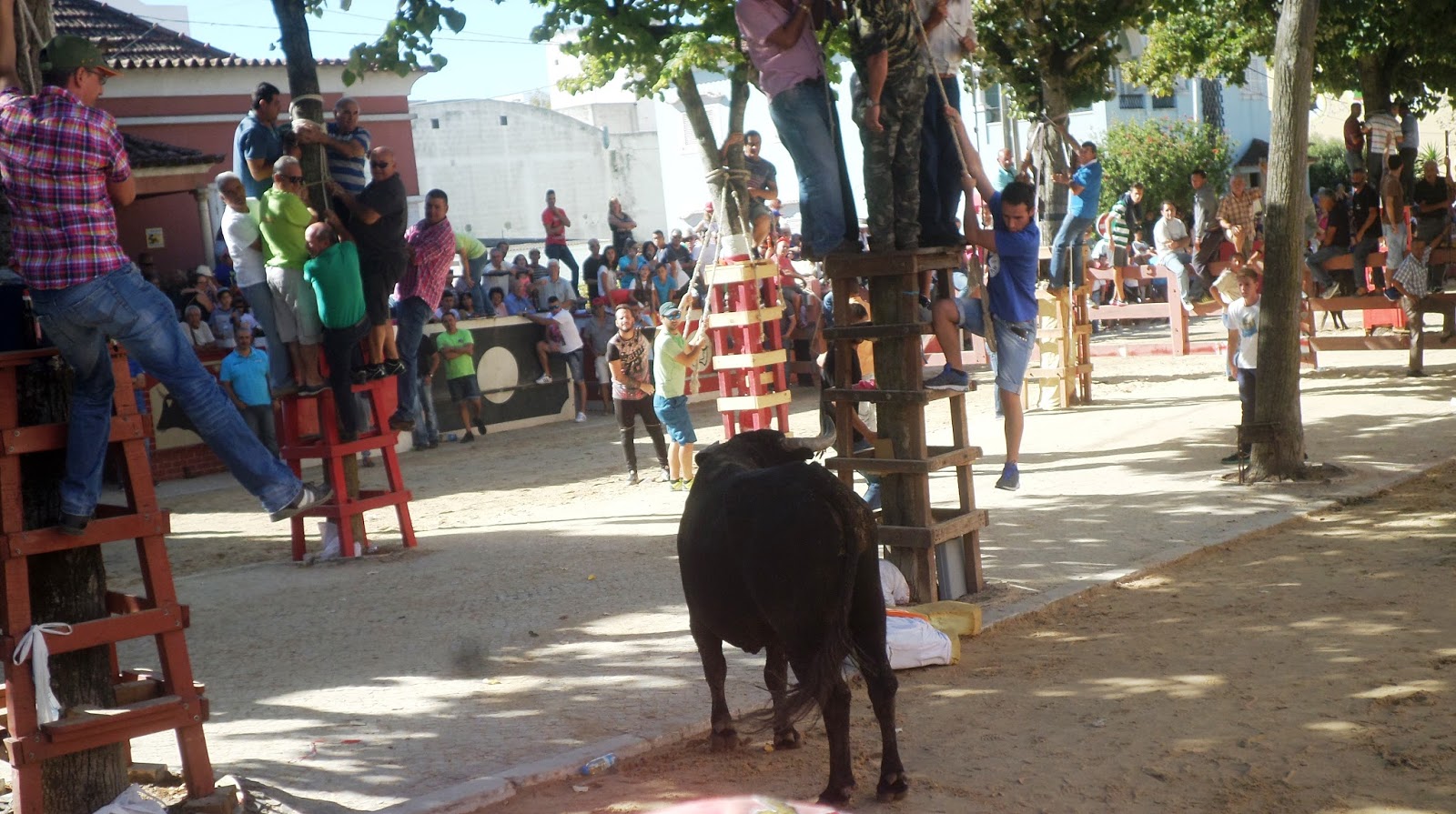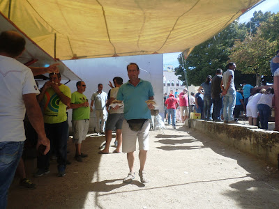 A tasca montada em plena arena improvisada, o frigorífico (pote suspenso com cervejas em gelo) a meu ver o mesmo deveriam fazer com o fogareiro preso por correntes que içavam quando viesse o toiro, porque de vez em quando o toiro manda tudo para o ar e as bifanas perdem-se na areia...