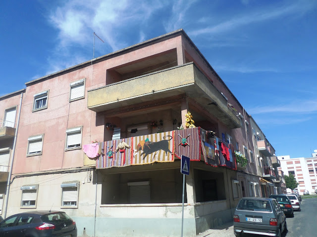 Numa garagem nas imediações vimos mesas compridas prontas para servir o almoço que alguém fazia na entrada do portão, caldeirada, o tacho era enorme...acredito seria para presentear os convidados vindos de outras terras para o jogo do chinquilho(?)