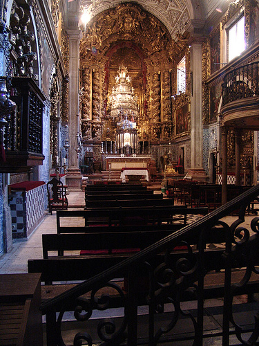 A sua Igreja é hoje uma notável obra de talha dourada.