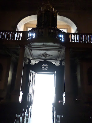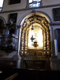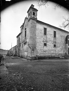 Tabelámos conversa com um motorista da Santa Casa que procedia à descarga de víveres, disse que conhecia muita Igreja em Lisboa, mas nenhuma tão bonita como esta em prata...Supostamente pela foto também em talha dourada...Abrigava não só freiras provenientes de famílias fidalgas, como recolhidas, viúvas de militares ou senhoras cujos maridos andavam em guerra em nome d'el Rei. "