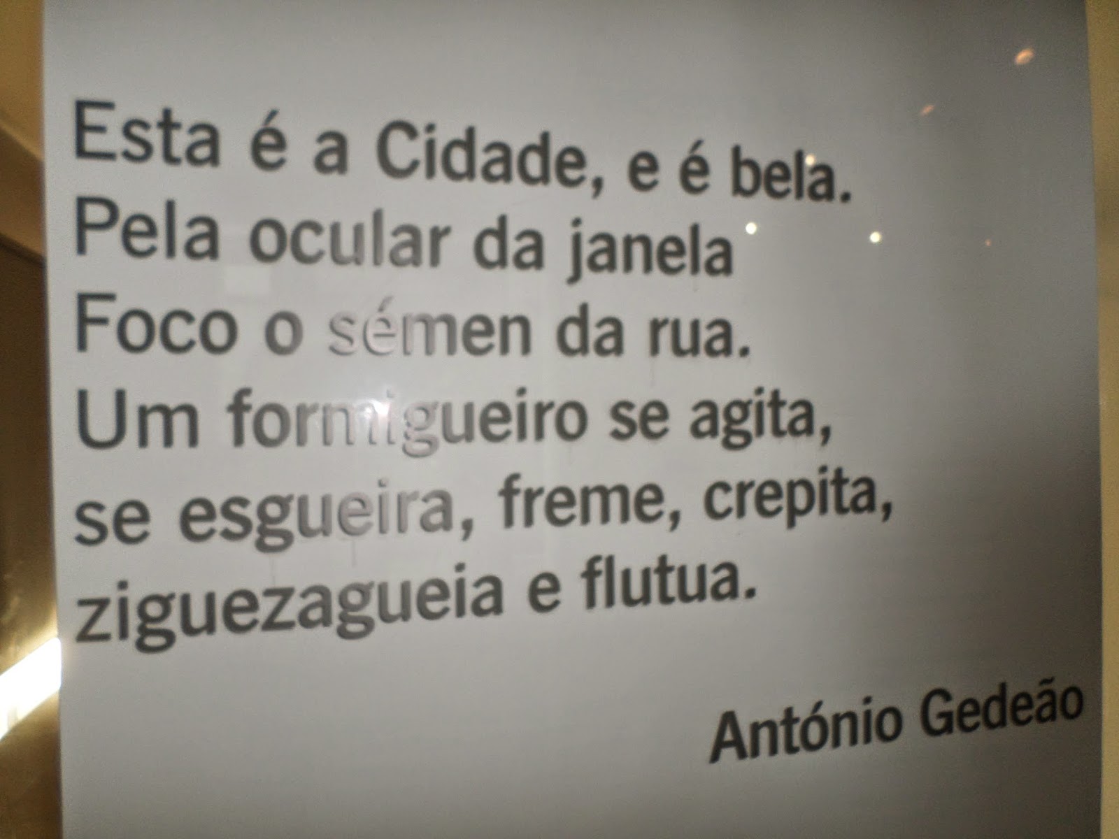 Escapou-me por completo registar a foto da máquina de projetar na entrada que foi da SFUAP e não retive na memória o verso do Ary dos Santos...Graças à cortesia de alguém que fez o favor de o mencionar num comentário , passo a transcrever "A cidade é um poro, um pulmão que respira."
