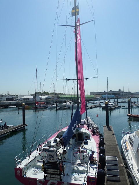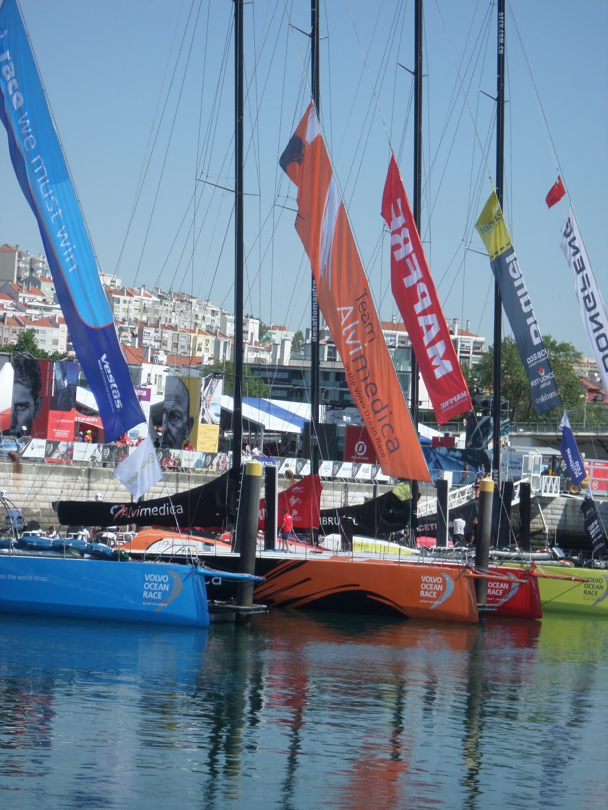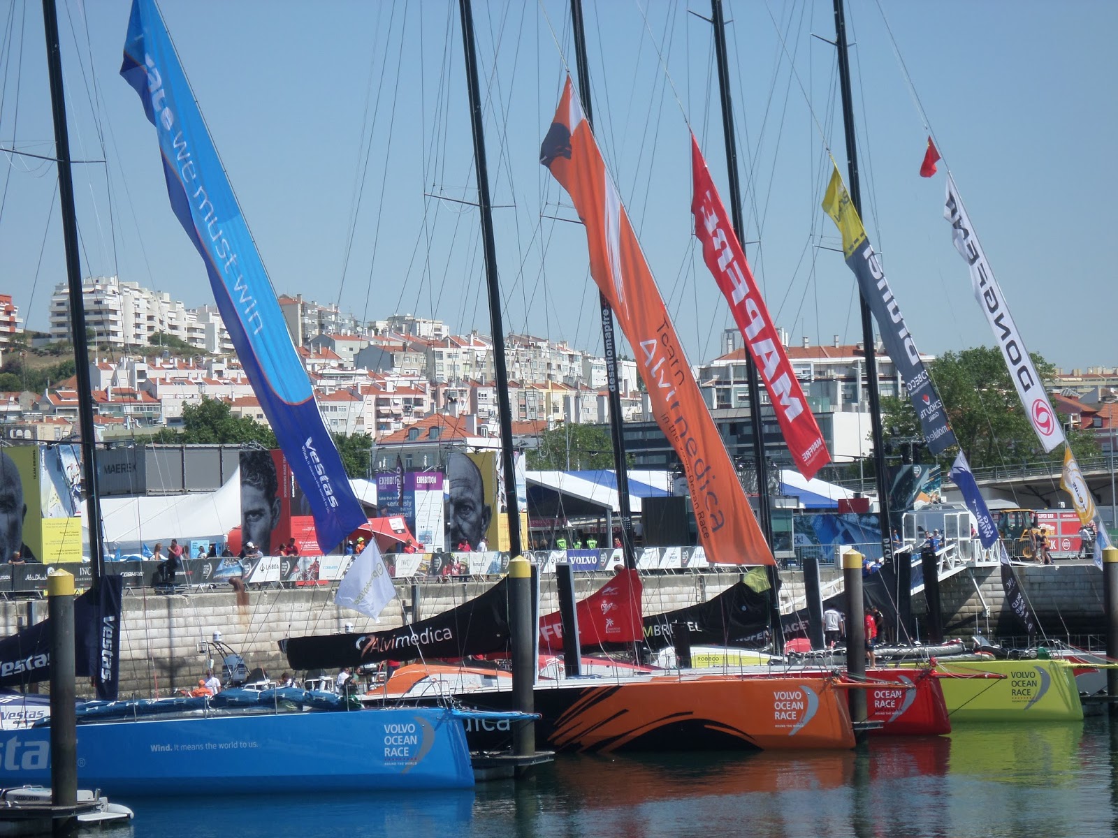 Os sete veleiros da Volvo Ocean Race na doca de Pedrouços.