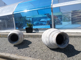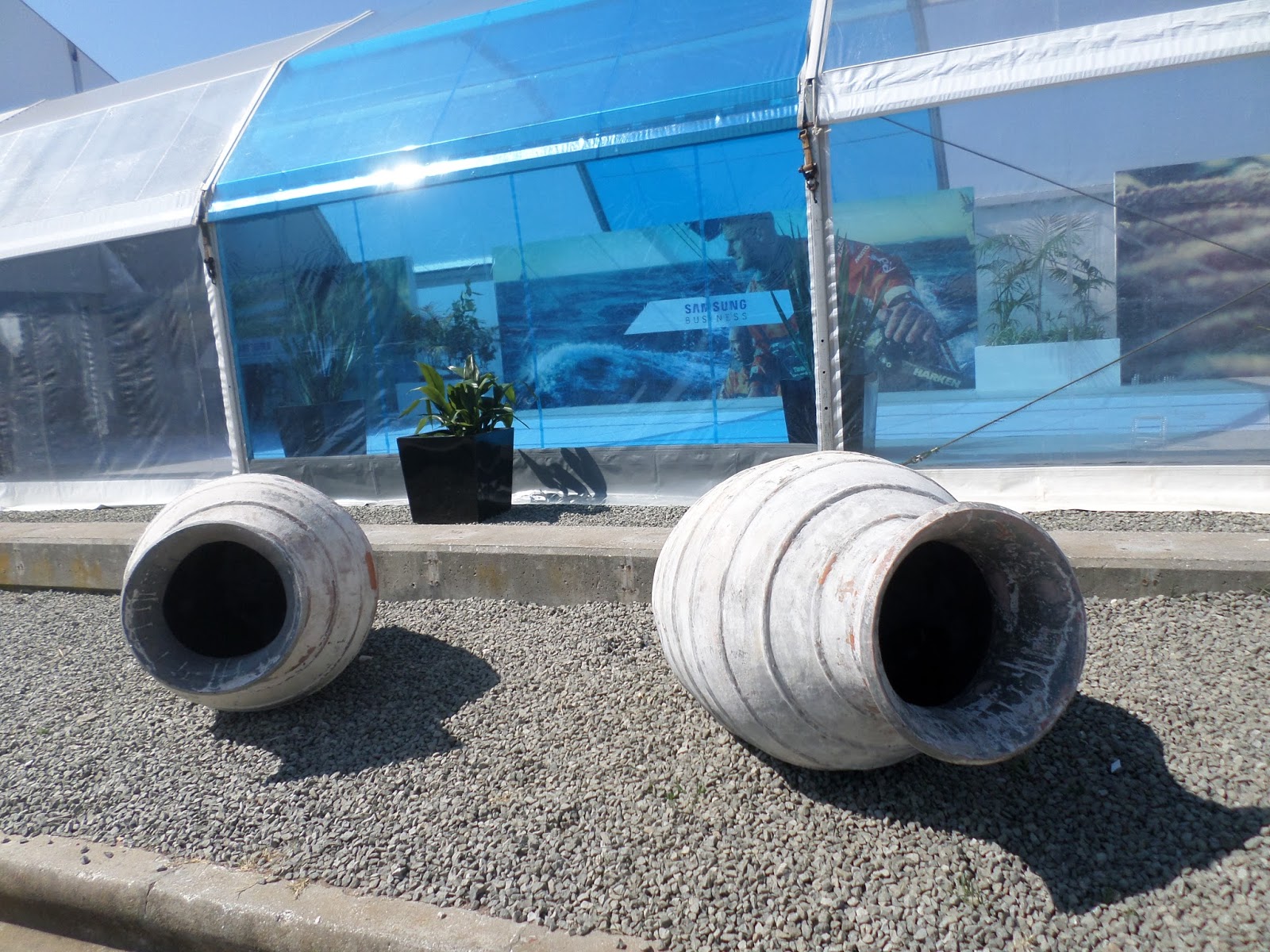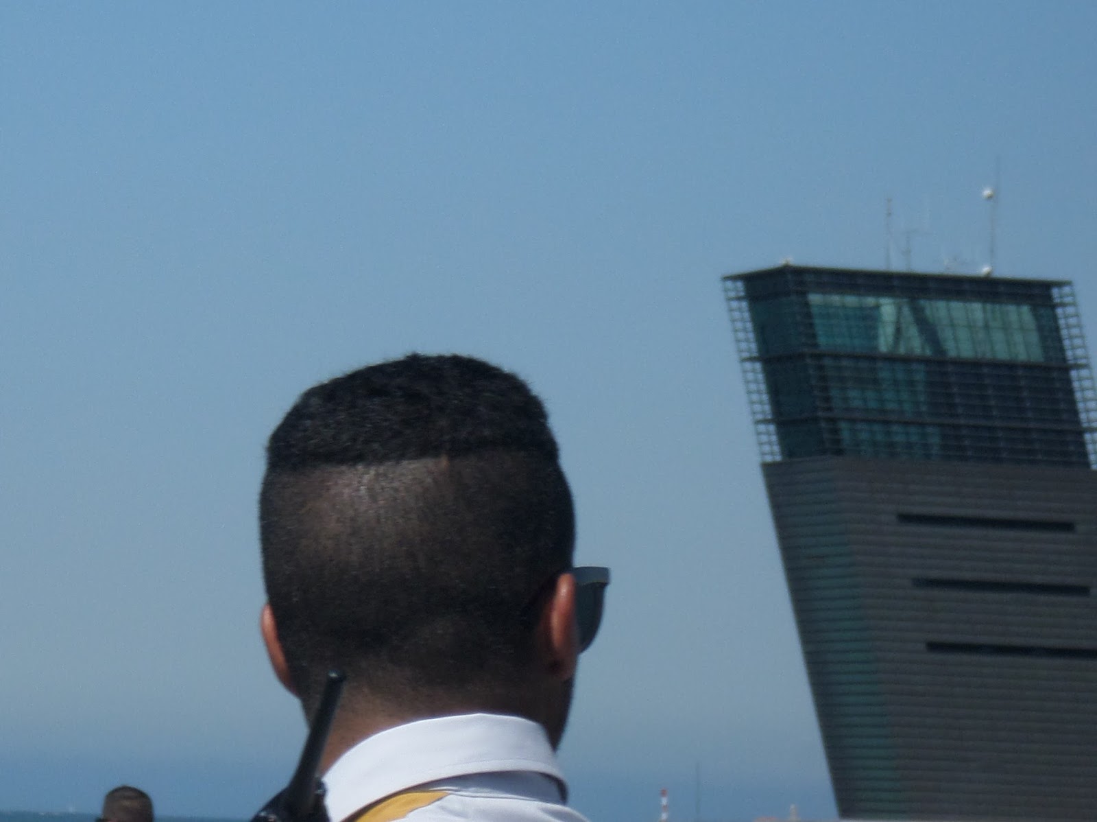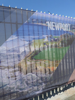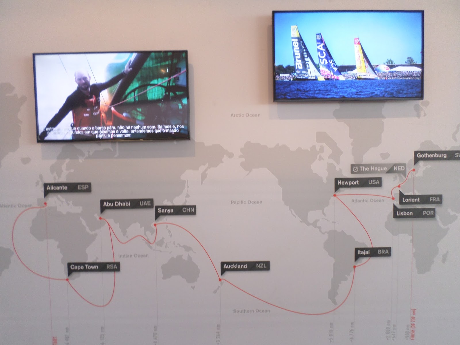 De comboio até Algés. Depois de um descampado as redes de proteção do evento a norte, com paisagens das várias paragens pelo Mundo.