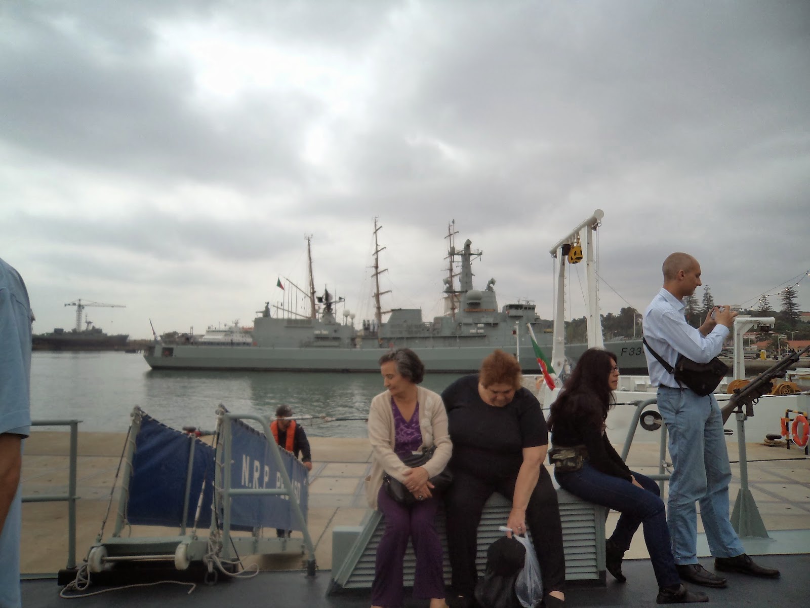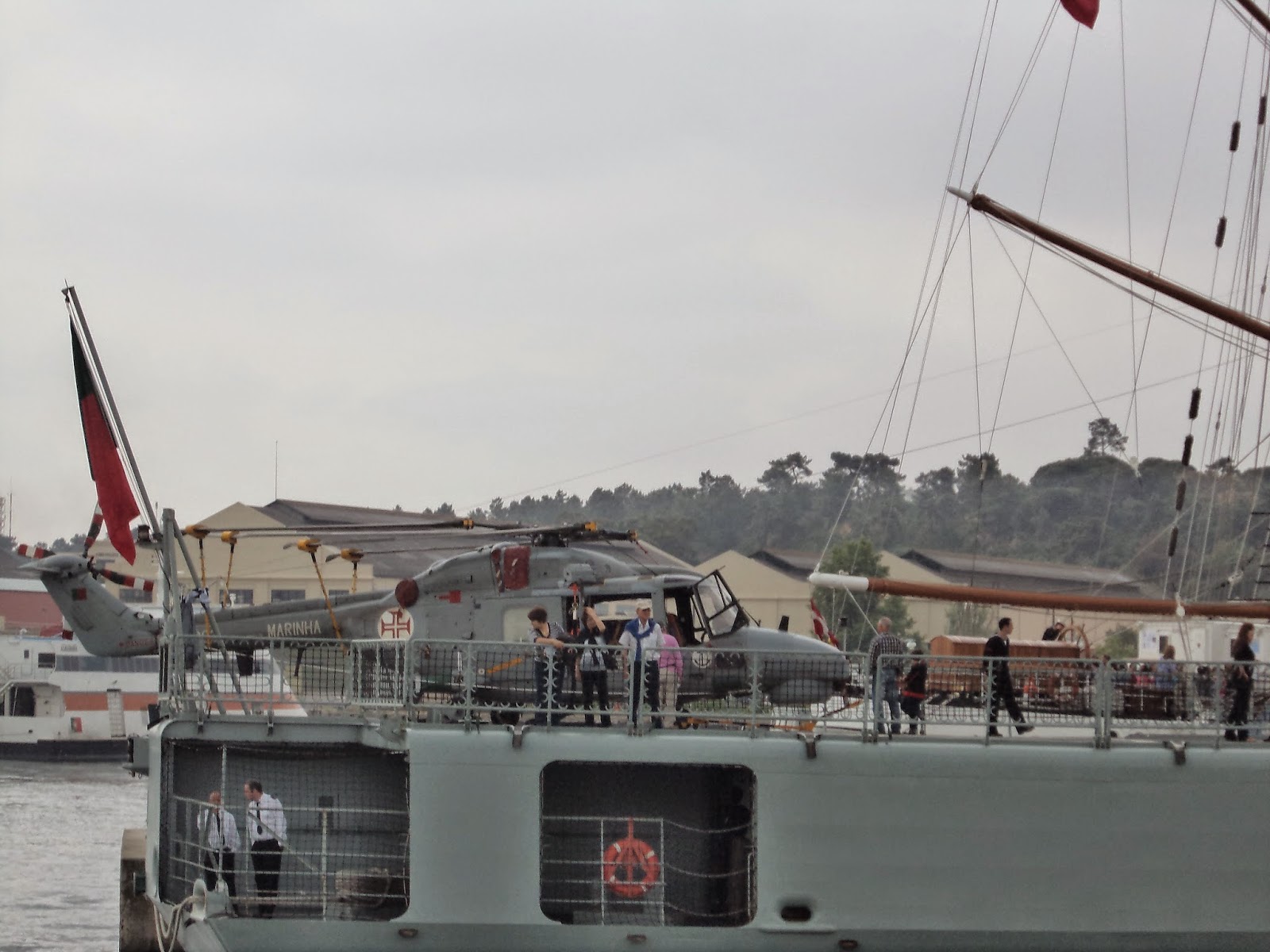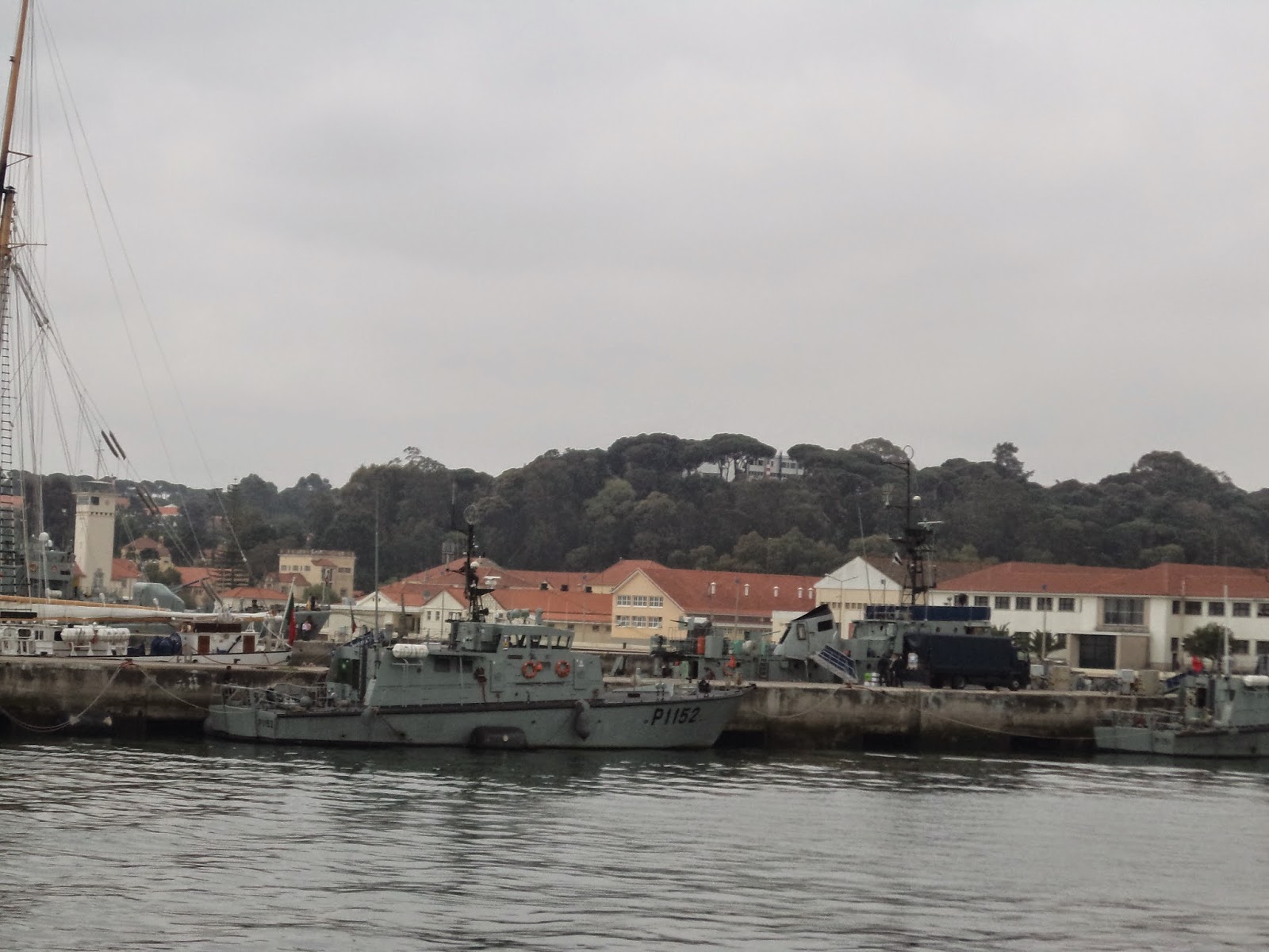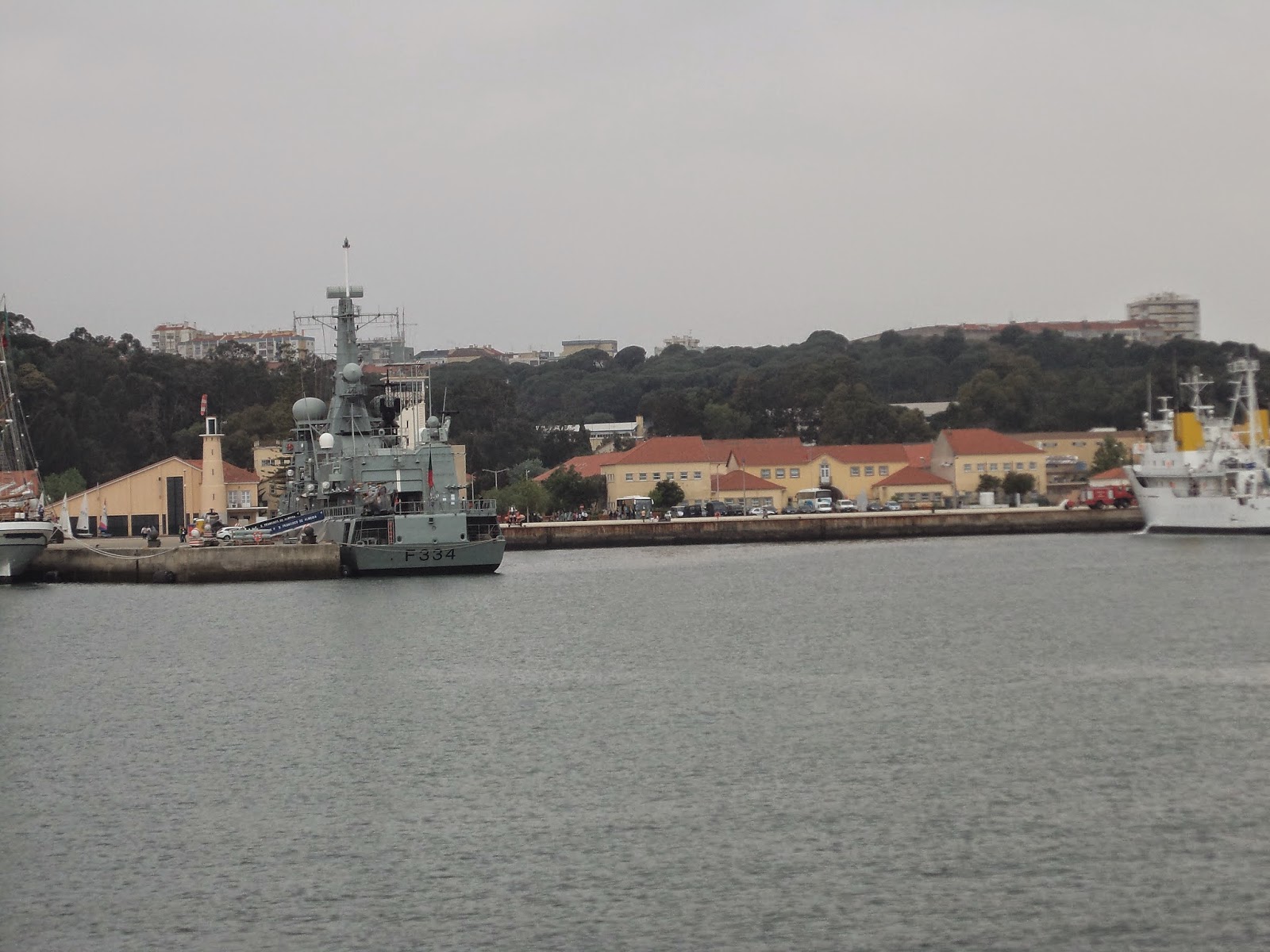 Navio mais pequeno que a Sagres, não estava em visita.Por detrás a vista do verde da mata de pinheiro manso do Alfeite.