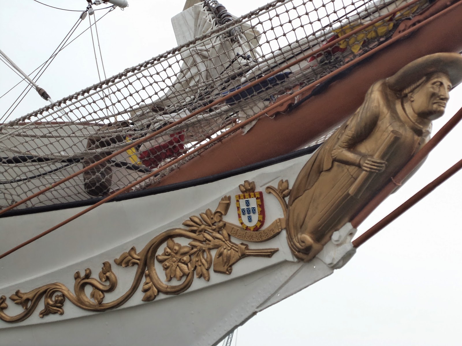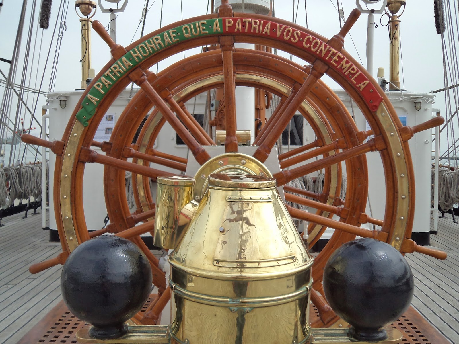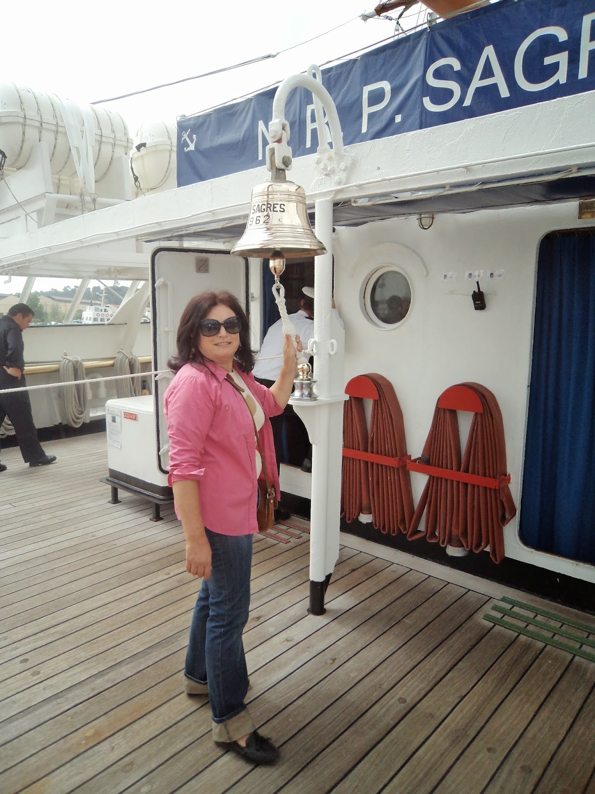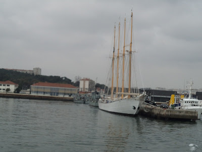 Gostei de sentir um veleiro a sério: cordas, lemes, mastros - tinha uma vela aberta com a Cruz de Cristo - na ré existem mesas com bancos corridos em madeira para se lanchar ao sabor da maresia.Navio elegante e belo com latões a reluzir oiro.