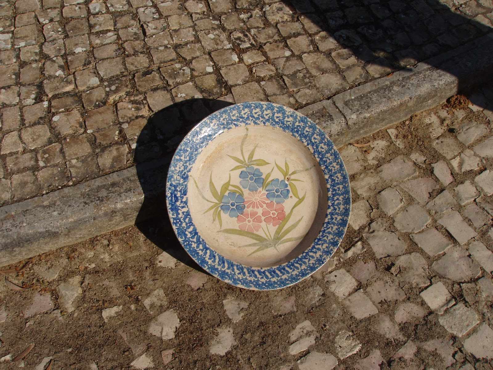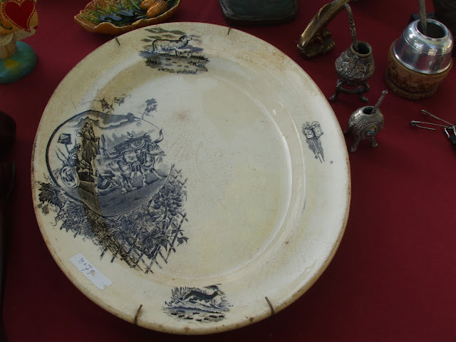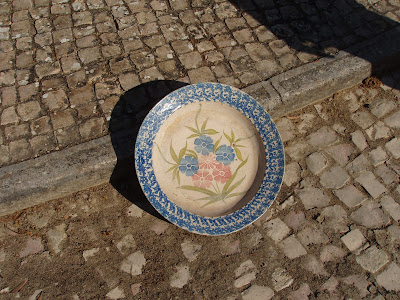 - Noutra banca de velharias conheci a Fátima com o marido onde pedi para fotografar um grande prato de faiança de Coimbra gateado..Não pude trazer achei carote...