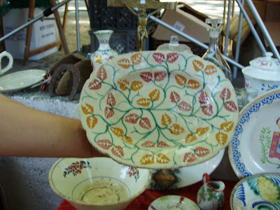 Dulce, loira, nasceu a 6 de maio um dia depois de mim, sentimos no imediato uma empatia cúmplice incrível, mulher muito bonita, e muito alegre tal como eu. Na sua banca uma maravilha de peças em prata, marfim, faiança e...mal parei para não me perder!