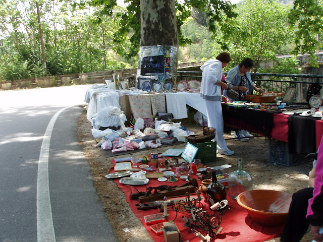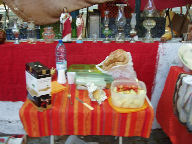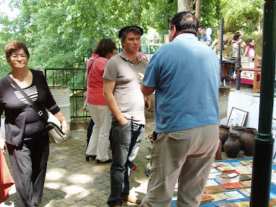 Lena, alta, elegante dona de um olhar à matador, apesar de sereno, muito querida, deu-nos receitas de bolos, na sua banca de artesanato com peças mui bonitas, diferentes do habitual, muito criativas. Também me ajudou no embrulha e desembrulha, ofereci-lhe uma tacinha em faiança com uma ave pintada, possivelmente Talavera de La Reina, ela ofereceu-me o que eu quisesse da banca...escolhi uma boneca em tricot, tricolor, com cheiro de alfazema.