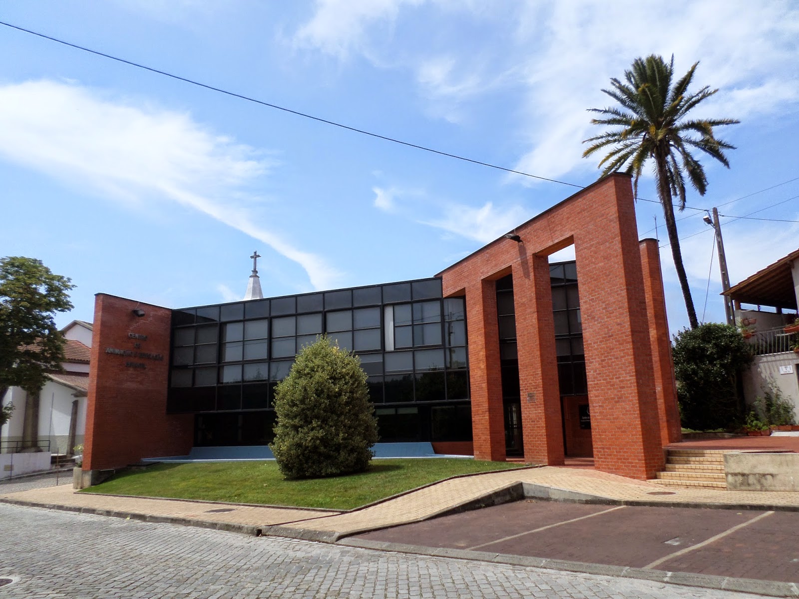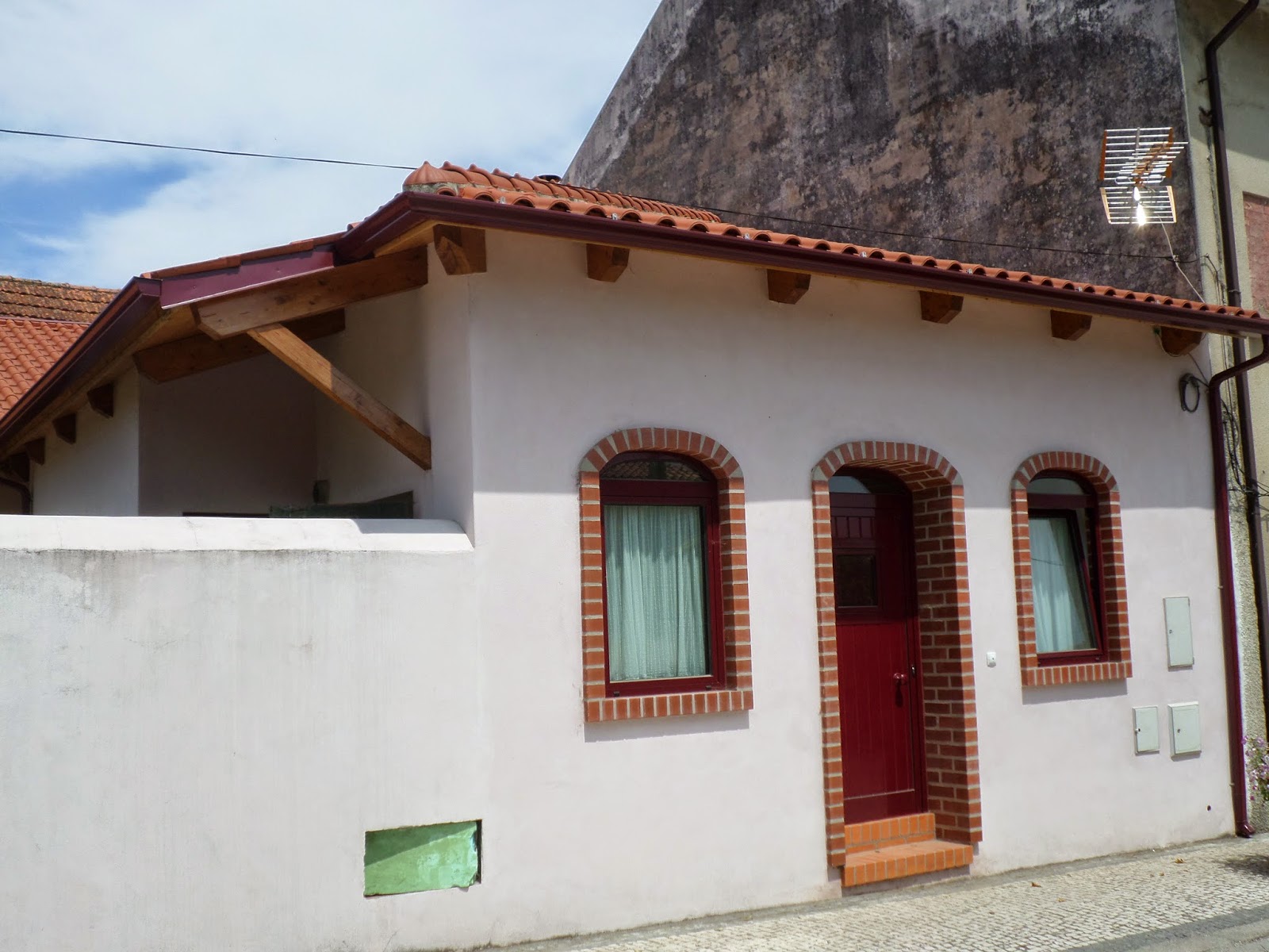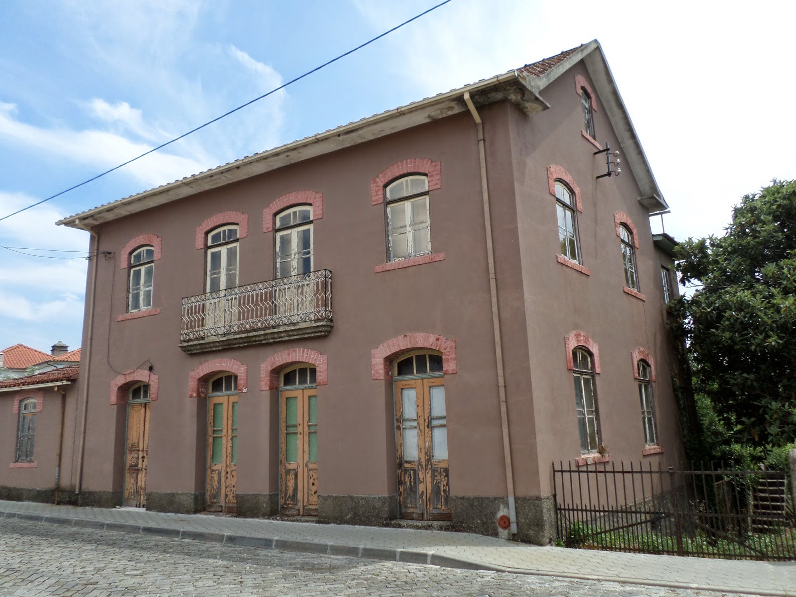Encontrei no início da rua de Aveiro um prédio alto forrado na frontaria a azulejo.