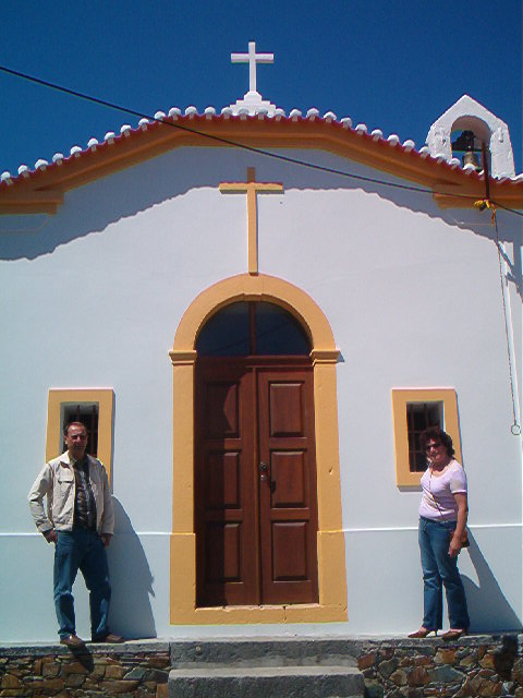 Sentadas no banco defronte da capela que ainda não tinha sido remodelada, tendo-lhe sido retirado os bancos de pedra ocos que tinha na frontaria, portanto antes de 1965 (?).