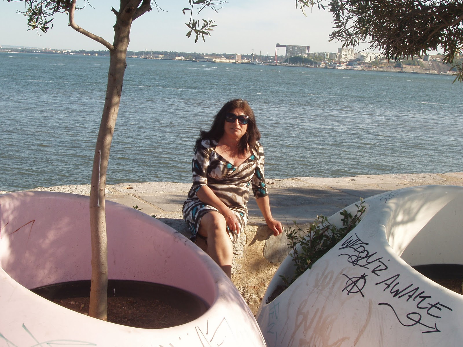 Como está lindo o Cais do Sodré com tantos novos bancos redondos de cores fortes e floreiras com oliveiras. Muita gente a mirar o rio...