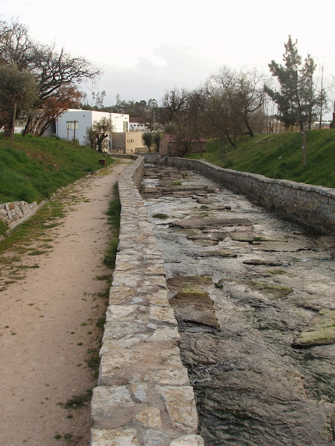 «(...) se apeava da sua liteira para beber água fresca e banhar os pés e ainda dar esmola a um Ancião - Pois é lenda! A Rainha faleceu no inicio da centúria de 300, este troço romano esteve desativado até depois de 1593 com a deslocação do burgo de poente para nascente vindo em 1648 a ser construída a ponte, e reutilizado na minha teoria. Onde foi provável a Rainha ter passado foi mais abaixo. Nas Lagoas a via romana teve duas derivações- uma para poente pelas Lameiras na beira da estrada real havia um grande tanque lajeado com dois degraus em volta e na esquerda um chafariz que se chamava Bica - local onde o comodismo seria de longe melhor naquele tempo do que na ribeira...
