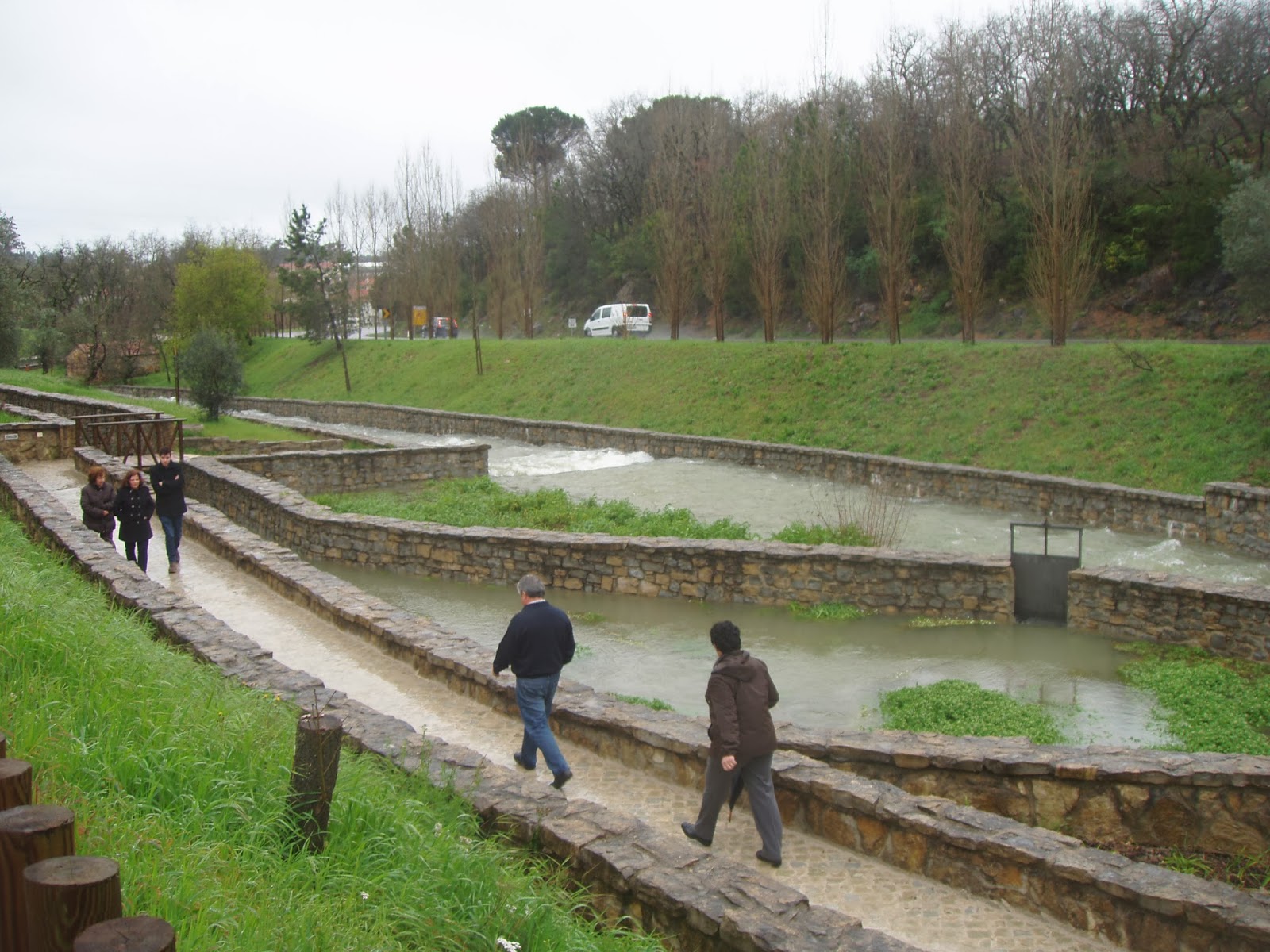 A razão de não se ter aproveitado a largura do términos da barreira em borracha para uma piscina? Falhou o bombeamento de água do poço sul para manter espelhos de água circulante em tempo de secura onde no verão em Ansião é abrasador!