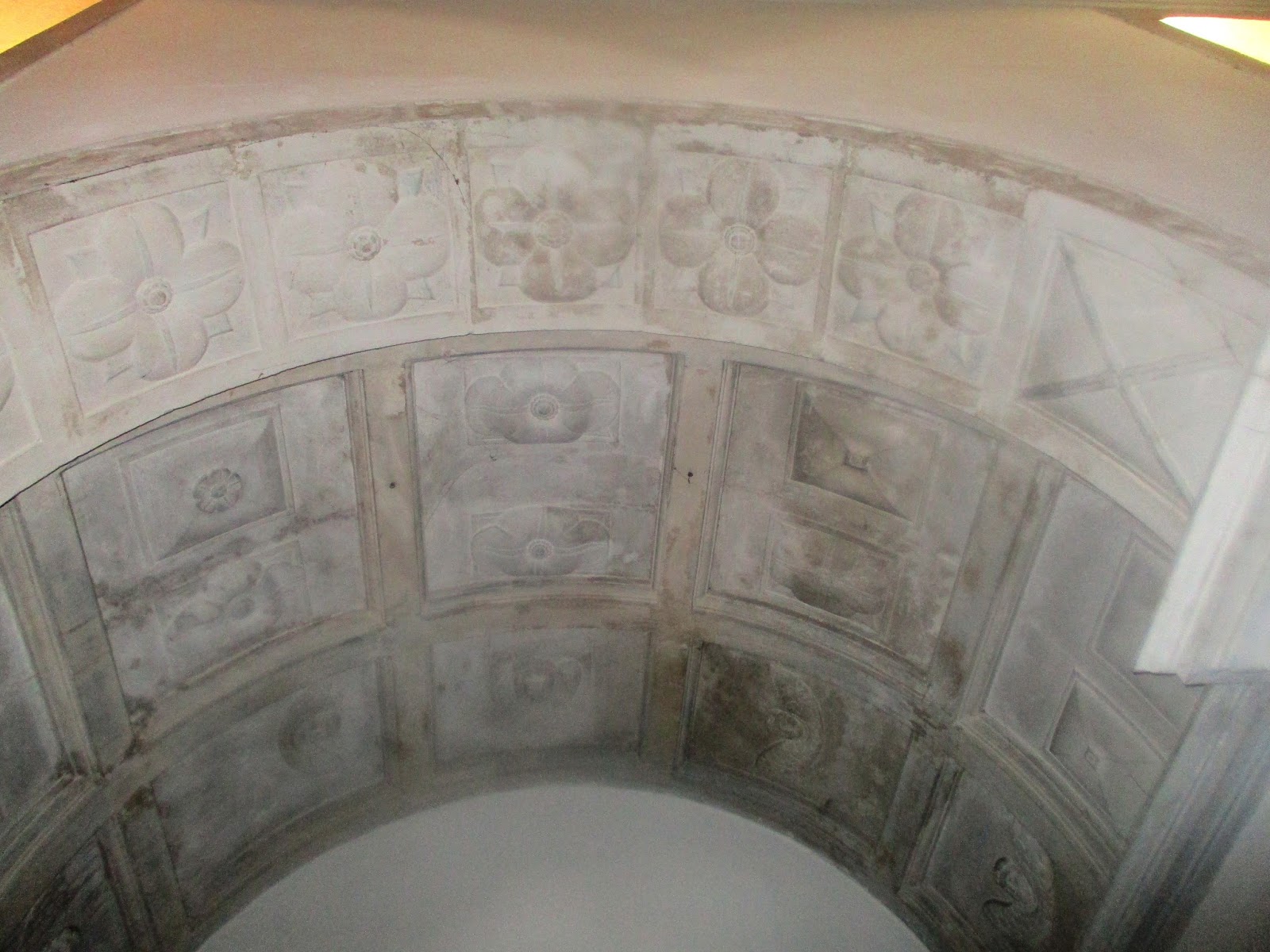 No meu tempo de miúda havia um belo reposteiro em veludo vermelho com folhos a cobrir o arco, mais tarde retirado.Ainda são visíveis as roldanas de suporte.